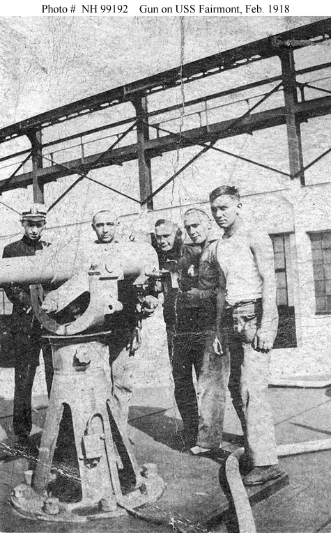 Crewmen with a small gun (perhaps a 3-pounder) on board the ship, while she was at Philadelphia, Pennsylvania, February 1918.
