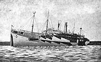 USS America, a 21,085-ton transport, was built at Belfast, Northern Ireland, as the German passenger liner Amerika. Completed in October 1905, she spent the next nine years on the Hamburg-America Line's service between Germany and the United States. She was caught at the western end of the route when World War I began in August 1914 and was laid up at Boston, Massachusetts, from then until the U.S. entered the conflict in April 1917. Seized at that time by American authorities, Amerika was turned over to the Navy for conversion to a troop transport. In August 1917, while this work was underway at the Boston Navy Yard, she was commissioned as USS Amerika, a name soon changed to America.