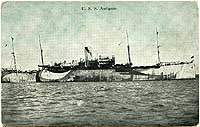 USS Antigone, a 17,024-ton transport, was built in Germany in 1900 as the German passenger liner Neckar. She was laid up at Baltimore, Maryland, after the outbreak of World War I made it generally impossible for German merchant vessels to operate at sea. Seized when the United States entered the War in April 1917, she was turned over to the Navy in July and converted to a transport. Renamed Antigone at the beginning of September 1917 and placed in commission a few days later, she completed outfitting at Norfolk, Virginia, and began active service in late November.