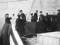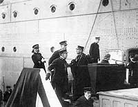 U.S. Navy officers leaving the ship at Brest, France, probably on 13 December 1918.