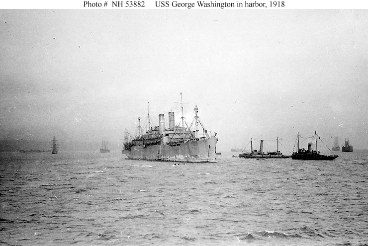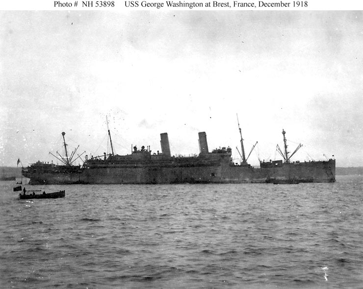Photo # NH 53899:  USS George Washington anchored in Brest Harbor, France, December 1918