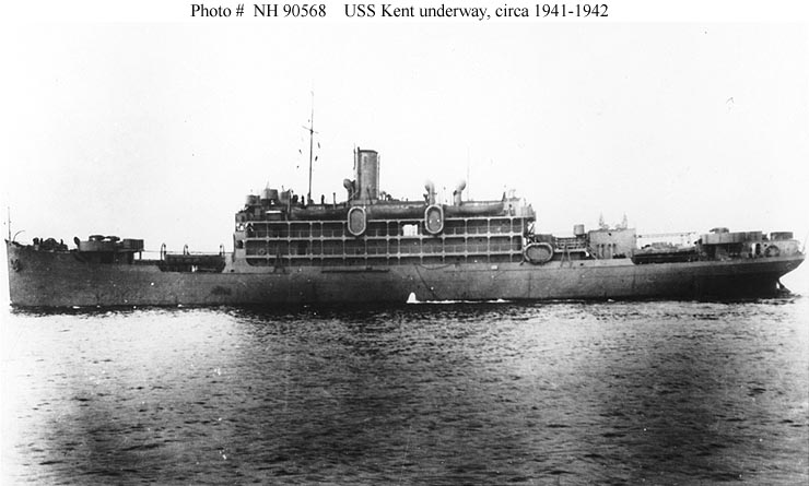 SS Kent was purchased by the U.S. Army in April 1941 and renamed Ernest Hinds. Converted to a troopship, she had brief Army service before being transferred to the Navy in July 1941. Renamed USS Kent (AP-28), she carried passengers and cargo along the U.S. East Coast and in the Gulf of Mexico area until March 1942, when she was returned to the Army. Her subsequent history is covered under Ernest Hinds (U.S. Army Transport and Hospital Ship, 1941, 1942-1946.