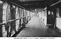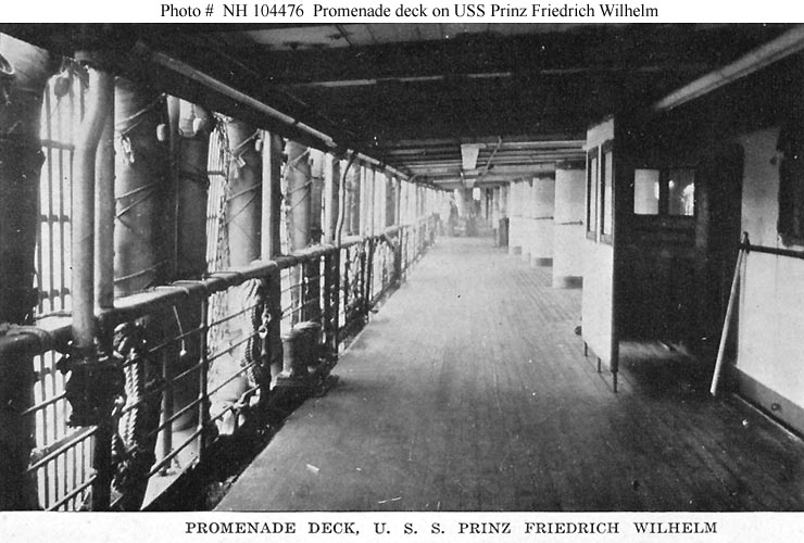 Halftone reproduction of a photograph of the ship's promenade deck, 1919. It was published in 1919 by A.M. Simon, 324 E. 23rd St., New York City, as one of ten images in a "Souvenir Folder" concerning USS Prinz Friedrich Wilhelm.