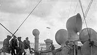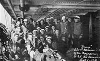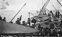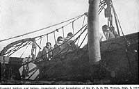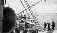 Crewmembers on deck shortly after the ship was torpedoed by German