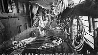 Bucket brigade bailing water out of the after Troops' Mess Hall,
