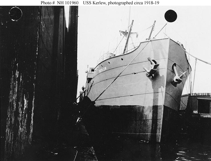 This large number of U.S. Navy cargo ships is divided here into eighteen groups, containing between 1 and 57 vessels. The cargo ships differ from World War I era transports, which are easily categorized by number of smokestacks and number of masts, because all but a few of the cargo ships had two single masts, one fore and one aft, and one smokestack. (In addition, nearly all had plumb bows and counter sterns.) Instead the groups of cargo ships are defined by basic characteristics of their entire rig (the number of single and paired uprights--masts and kingposts respectively) and the basic features of their deck lines (the number and location of hull islands). In some cases the ships are further subdivided by the location of the uprights. Nearly all kingposts did double duty as ventilators--many had fancy tops and some looked like cowl ventilators with booms. Although mainly intended as a tool for ship picture identification, these groups and the similar groups on the "World War I Era Transports" page are also useful for analysis and understanding of the Navy's huge but temporary World War I inventory of large non-combatant vessels.
