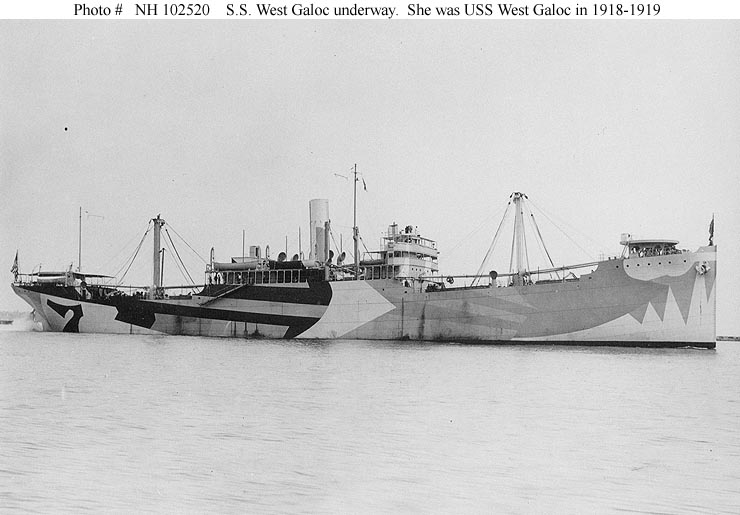 This list contains 354 cargo ships used by the Navy during World War I. Between its establishment in January 1918 and late 1919 the U.S. Navy's Naval Overseas Transportation Service (NOTS) operated nearly all of these ships, primarily to carry supplies to American forces in the European combat zone and then help bring Army supplies and equipment back to the United States. Thirteen of these cargo ships were lost during the war. (The ships lost were Buenaventura, Californian, Herman Frasch, Lake Bloomington, Lake Borgne, Lake Damita, Lakemoor, Oosterdijk, Saetia, Ticonderoga, Westgate, Westover, and Zaanland.) After the November 1918 armistice some of the larger NOTS cargo ships and some similar newly acquired vessels were hastily converted into troop transports and reassigned to the Cruiser and Transport force to help bring the soldiers home. (These are listed both here and on the page for "World War I Era Transports" in a section entitled "freighters converted to transports.") For some special-purpose cargo ships see the pages on "World War I Era Supply Ships and Refrigerated Cargo Ships" and "World War I Era Colliers."