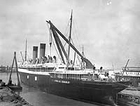 Photo #: NH 69812 S.S. Great Northern (American Passenger Liner, 1915) In port, circa 1915. Constructed by the William Cramp & Sons shipyard, Philadelphia, Pennsylvania, this ship served as USS Great Northern in 1917-1919 and as USS Columbia (AG-9) in 1921-1922. Courtesy of the San Francisco Maritime Museum, 1969. U.S. Naval Historical Center Photograph. Online Image: 73KB; 740 x 585 pixels |