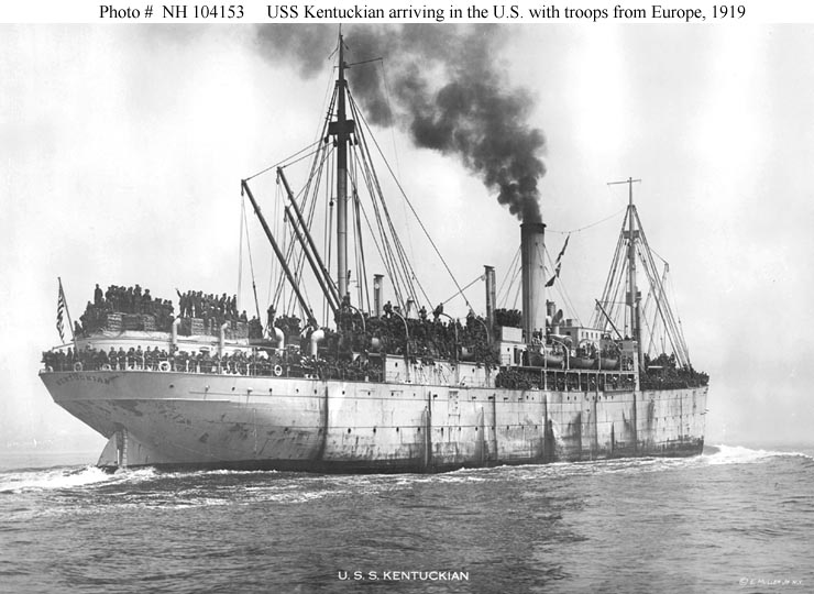 Photo #: None USS Kentuckian (ID # 1544) Probably shown arriving in U.S. waters in 1919 while transporting troops home from Europe. Source: Shipscribe. |