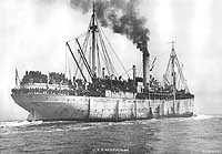 Photo #: NH 99512 S.S. Kentuckian (American Freighter, 1910) In port, circa 1917-1918. This ship served as USS Kentuckian (ID # 1544) in 1919. Courtesy of Don S. Montgomery, USN (Retired). U.S. Naval Historical Center Photograph. Online Image: 49KB; 740 x 460 pixels |