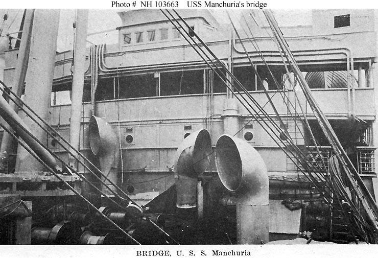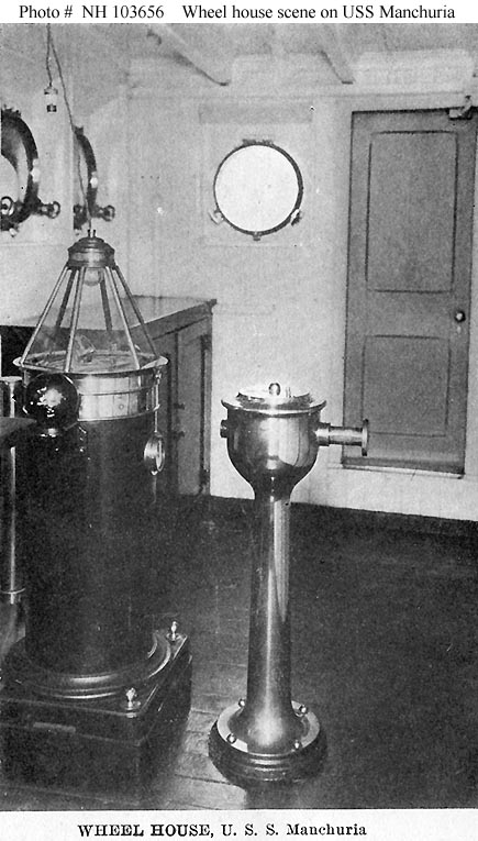 Halftone reproduction of a photograph taken in the ship's wheelhouse,