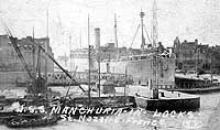 Photo #: NH 63220 SS Manchuria (American Passenger Steamship, 1904) In harbor, probably after World War I. This steamer served as USS Manchuria (ID # 1633) in 1918-1919. Courtesy of Lieutenant Herbert Campbell, USN (Retired), 1932. U.S. Naval History and Heritage Command Photograph. Online Image: 98KB; 740 x 620 pixels |