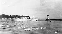 Though Yale was laid up in 1935, the National Emergency resulting from the outbreak of World War II in Europe brought her back into use in 1940, this time as a dormitory ship in Alaskan waters. The Navy again acquired her in April 1943 and in August she was commissioned as USS Greyhound (IX-106). Decommissioned at the end of March 1944, she remained in Navy service as a floating barracks in the Puget Sound area until March 1948. The old steamship was transferred to the U.S. Maritime Commission later in that year and sold for scrapping in June 1949.