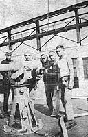 Some of the ship's gunners pose by her forward (three-inch) gun,
