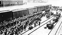 Soldiers boarding the ship at the American Bassens on the Gironde