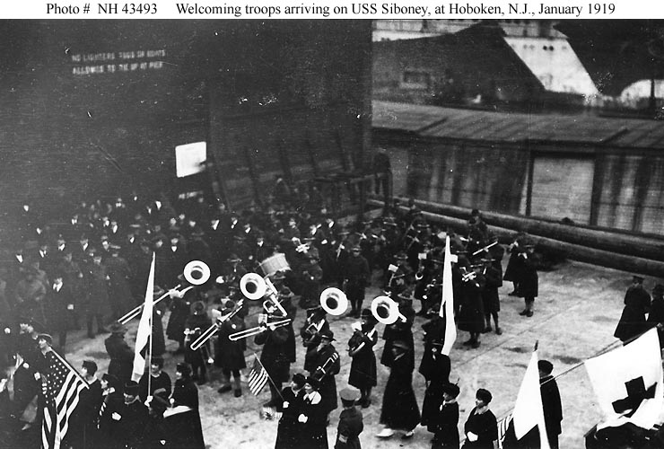 the ship arrives at Hoboken, New Jersey, on 3 January 1919. This
