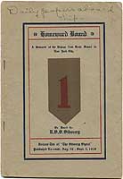 Photo #: NH 103241-KN (color) USS Siboney (ID # 2999) Front cover of a souvenir booklet containing Volume 10 of the ship's newspaper, the "Siboney Signal", published during her final U.S. Navy trans-Atlantic voyage, from 26 August to 2 September 1919. She was then transporting part of the Army's First Division home from France. More than 4500 copies of the "Siboney Signal" were printed daily for free distribution to the ship's complement and passengers. Collection of Captain Clarence S. Williams, USN. Donated by Mrs. Clarence S. Williams, 1975. U.S. Naval History and Heritage Command Photograph. Online Image: 87KB; 510 x 765 pixels |