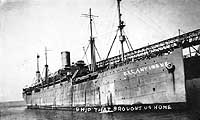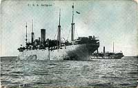 USS Antigone, a 17,024-ton transport, was built in Germany in 1900 as the German passenger liner Neckar. She was laid up at Baltimore, Maryland, after the outbreak of World War I made it generally impossible for German merchant vessels to operate at sea. Seized when the United States entered the War in April 1917, she was turned over to the Navy in July and converted to a transport. Renamed Antigone at the beginning of September 1917 and placed in commission a few days later, she completed outfitting at Norfolk, Virginia, and began active service in late November.