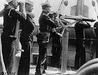 Photo #: NH 41702 USS DeKalb (ID # 3010) Officer firing a signal gun while a Sailor observes, 18 May 1918. The gun appears to be a 1-pounder Hotchkiss. U.S. Naval Historical Center Photograph. Online Image: 67KB; 740 x 560 pixels |