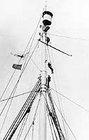 Note lookout "crow's nest" on the mast, and Sailors