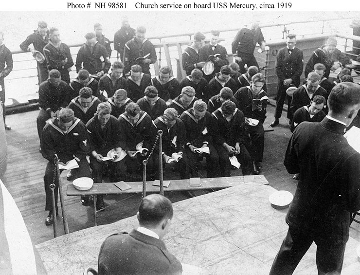 Church service held on board the ship, circa 1919.