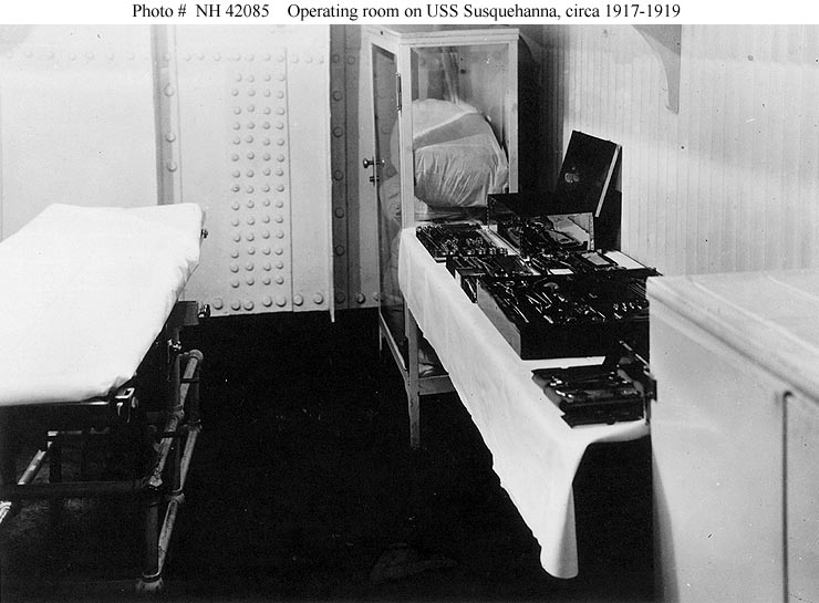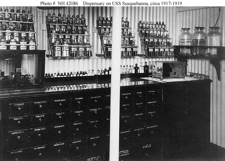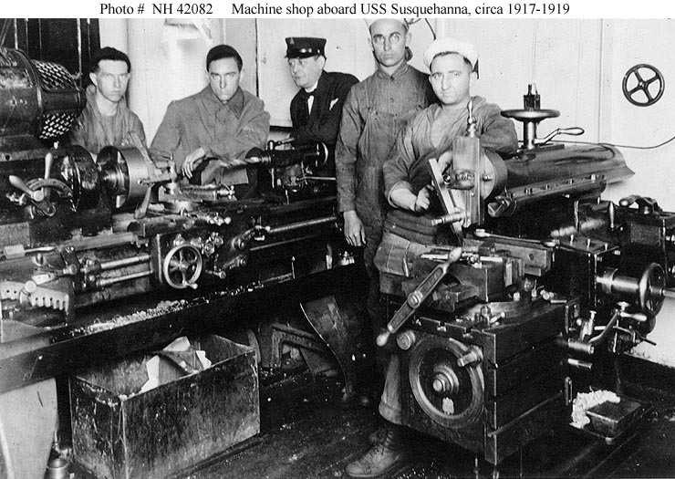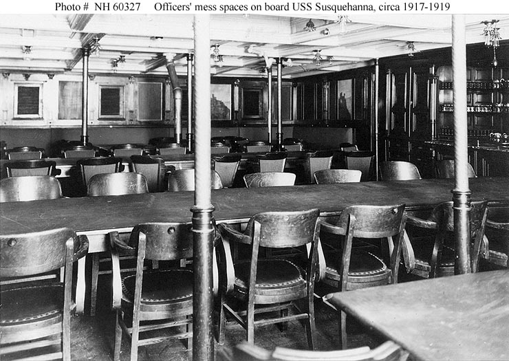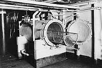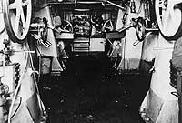 View in the ship's wheelhouse, showing binnacle, steering apparatus