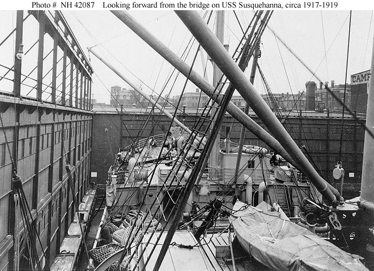 Six-inch gun mounted on the ship's deck, on a snowy day in 1917-1919.