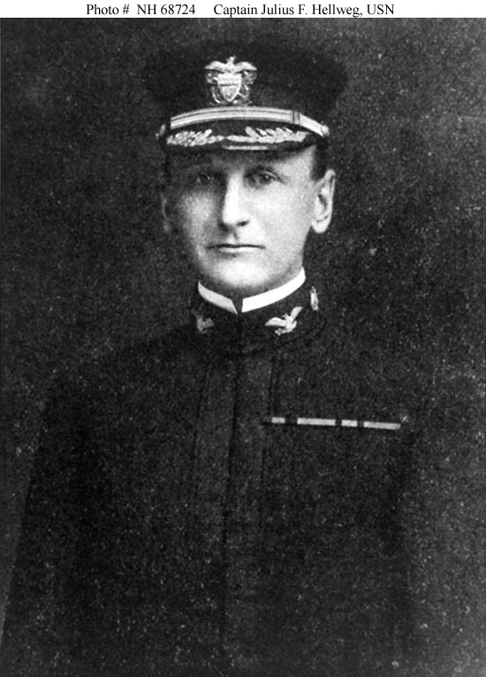 Photo #: NH 68724 Captain Julius Frederick Hellweg, USN Halftone reproduction of a photograph taken circa 1918-1919. From July 1917 to January 1918, while holding the rank of Commander, he was Commanding Officer of USS Pocahontas (ID # 3044). Copied in 1969 from "A History of the War Activities of the USS Pocahontas in 1919", in National Archives' Record Group No. 45-OS. U.S. Naval Historical Center Photograph. Online Image: 76KB; 550 x 765 pixels |