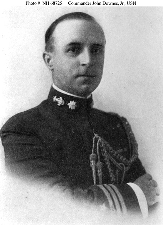Photo #: NH 68725 Commander John Downes, Jr., USN Halftone reproduction of a photograph taken circa 1917-1918. From November 1918 to November 1919 he was Commanding Officer of USS Pocahontas (ID # 3044). Copied in 1969 from "A History of the War Activities of the USS Pocahontas in 1919", in National Archives' Record Group No. 45-OS. U.S. Naval Historical Center Photograph. Online Image: 64KB; 555 x 765 pixels |