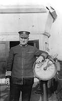 Photo #: NH 82948 Captain Edward C. Kalbfus, USN, Commanding Officer, USS Pocahontas (ID # 3044) Standing by an engine order telegraph on his ship's bridge, circa 1918. Collection of the USS Pocahontas Reunion Association, 1974. U.S. Naval Historical Center Photograph. Online Image: 46KB; 455 x 765 pixels |