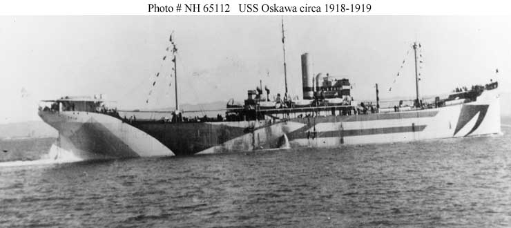 Oskawa, a 6204 gross ton (11,570 tons displacement) refrigerated cargo ship, was completed at San Francisco, California, in December 1918. She was commissioned in the Navy on January 1919 as USS Oskawa (ID # 3797), loaded a cargo of general supplies and in late January sailed from San Francisco for New York. Upon arrival there the ship began preparations for a voyage to Europe but was instead put on the list for demobilization. USS Oskawa was decommissioned in late February 1919 and returned to the U.S. Shipping Board. The Government retained her until 1942, when she was transferred to the United Kingdom and became S.S. Empire Raven. The ship was renamed Southern Raven in 1948 and scrapped in 1952.