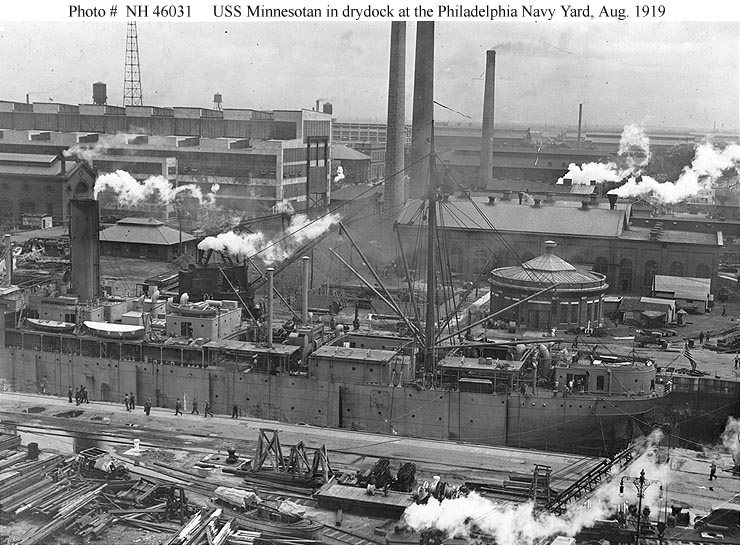 The following photograph of another ship was taken from USS Minnesotan, but does not show her or any of her structure: