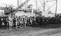 Minnesotan, a 6649 gross ton (14,375-tons displacement) freighter, was built in 1912 at Sparrows Point, Maryland, for commercial employment. In September 1917 she began operating under charter on behalf of the U.S. Army, carrying animals and other World War I cargo to France. The U.S. Navy took her over in August 1918 and placed her in commission as USS Minnesotan (her Navy ID #, 4545, was probably assigned some years later). Between early September and early November 1918 the ship made a round-trip voyage between the U.S. East Coast and Gibraltar. At the end of November, nearly three weeks after the Armistice brought the war's active phase to an end, Minnesotan began a second trip, this time to France. After returning to the U.S. in January 1919, she was converted to a troop transport, beginning work in that role at the end of March. During the next four months Minnesotan completed four voyages to and from France, bringing home more than 6000 service personnel. She was decommissioned in August 1919 and returned to her owner, the American Hawaiian Steamship Company, of New York City. Following three more decades of U.S. flag merchant service, the now very elderly steamer was sold abroad in July 1949.